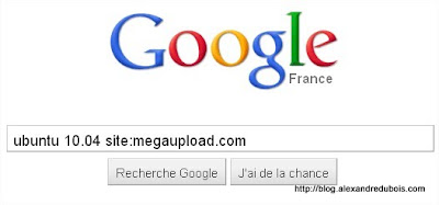Hors de question de taper « télécharger XXXXXXXX sur megaupload » dans Google sous peine de tomber sur des milliers de pages pas toujours pertinentes. En fait on va demander à Google de restreindre les résultats d’une recherche au site Megaupload grâce au mot clé « site:« .